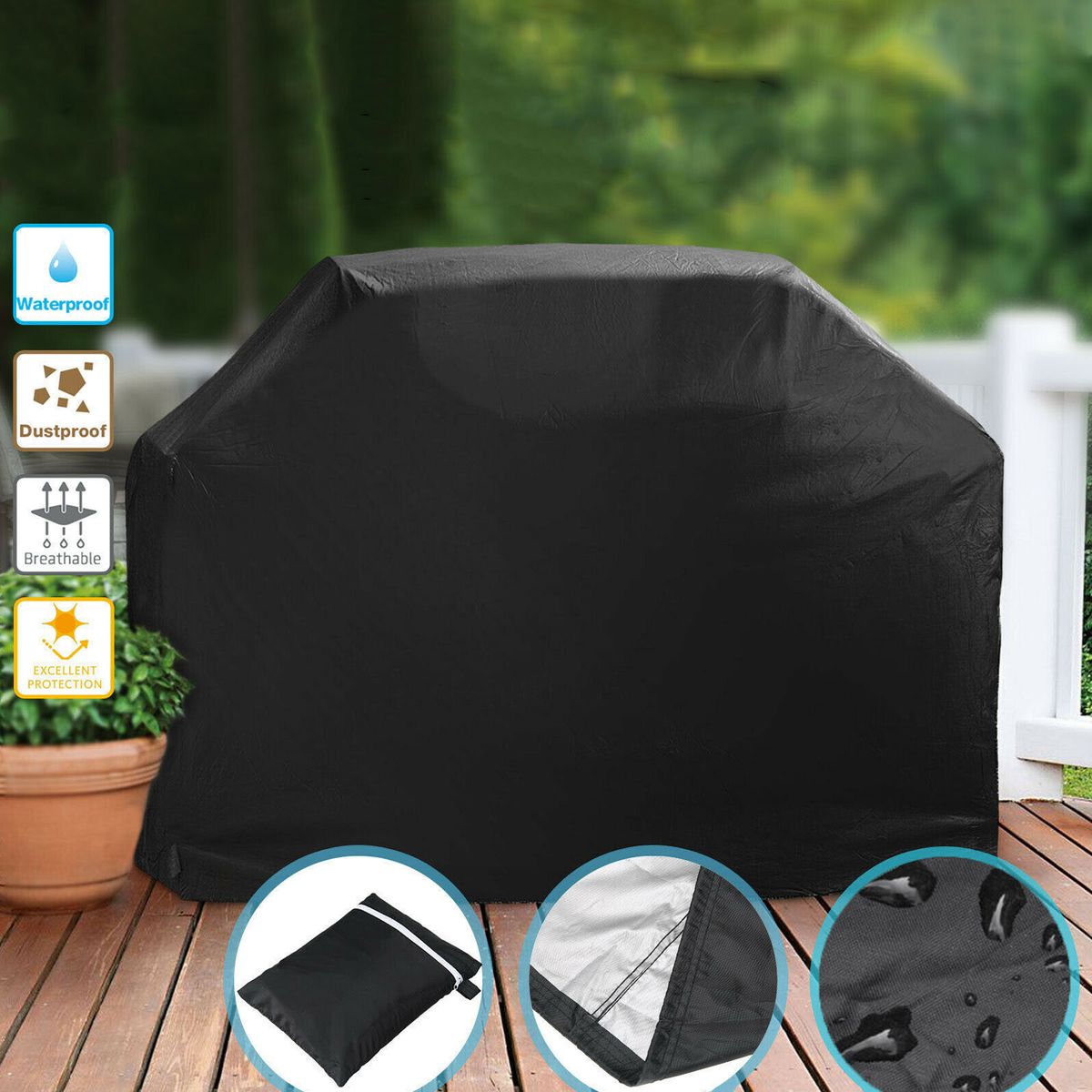 1X Rain Protective Outdoor Barbecue Cover Black Coated Silver Dust Weatherproof Waterproof Windproof Oxford Cloth