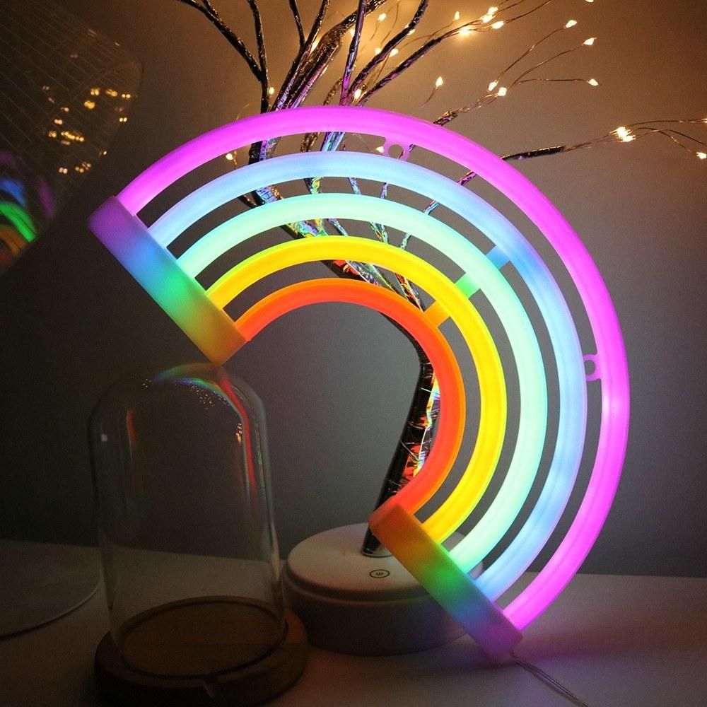 Buy Rainbow Design Neon Colorful LEDs Wall Lamp Night Light with USB Charging Port 3 * AA Batterys Cell Powered Operated For Children Room Living Bedroom Home Decoration Decor Present Gift in Nigeria