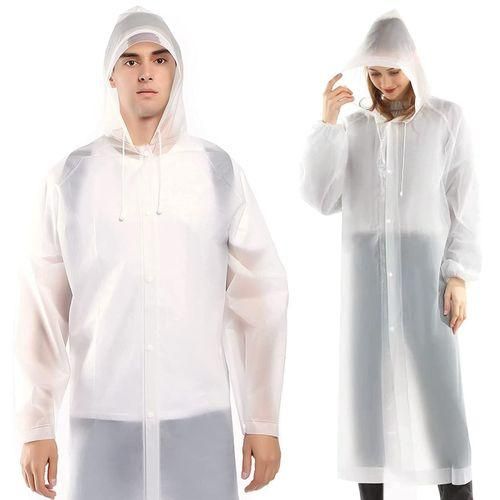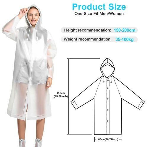 [Upgraded Design ] Each rain poncho's long sleeves and drawstring hood design keep your , head, and neck dry in rain, with elastic cuff, can prevent water from running back from the wrist. Buttons on the raincoats make it convenient to take in and off. It can be folded very small and put in the waterproof bag we gave away.