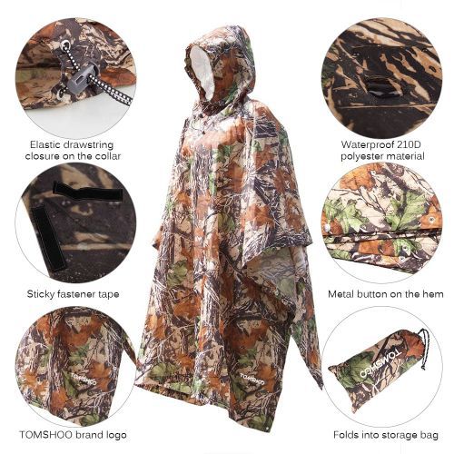 Features:MULTIFUNCTION: The hooded poncho can be used as a raincoat, camping mat, canopy shelter to block sunshine.