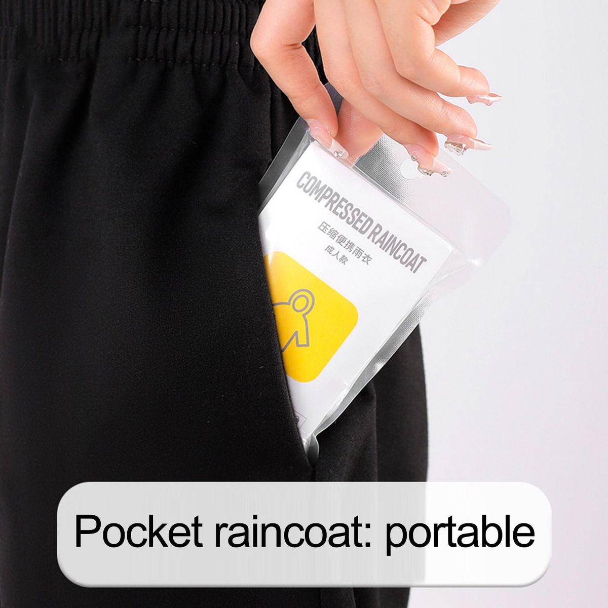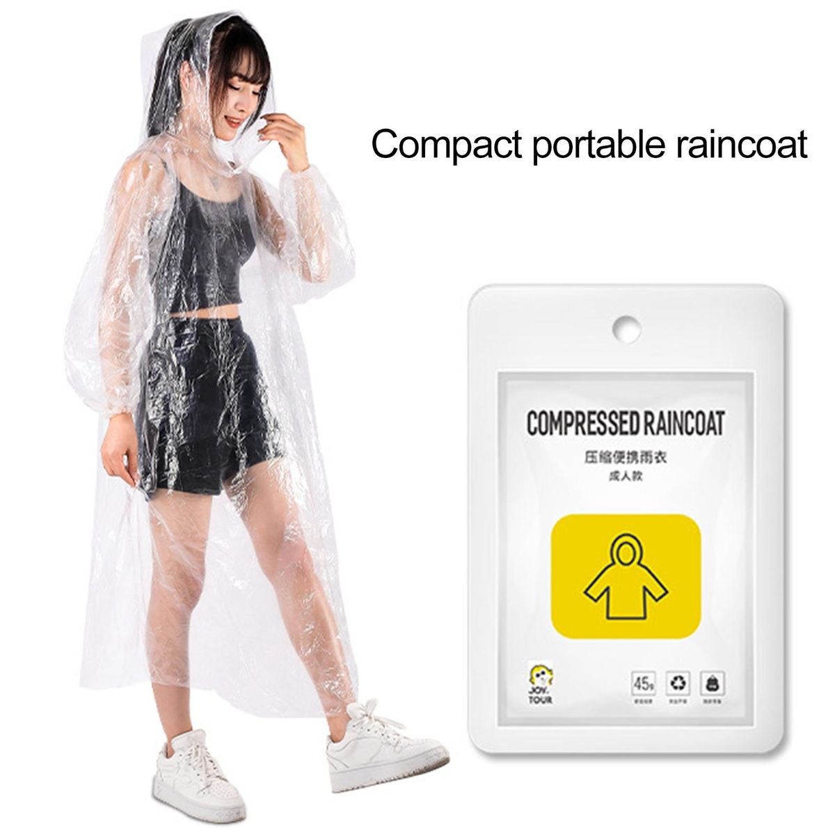 There are two sizes for you to choose from. Using compression package, this disposable raincoat is easy to be carried with you.