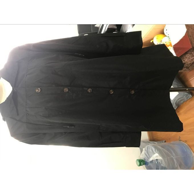 Relaxed fit, high collar, button up double protective closure featuring waterproof layer, adjustable drawstring hood, button decoration pockets with flaps over them, classic solid color, the length long for full protecting you from the rain and wind.