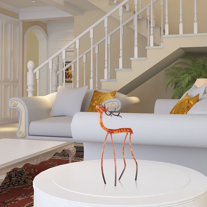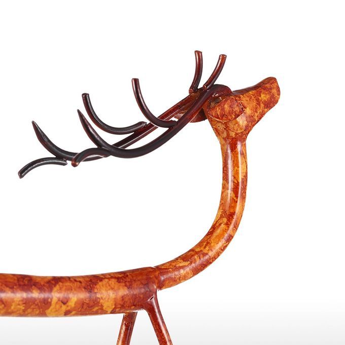 This is a moose ornament with abstract shape and exaggerated lines. The red deer looks up to the sky and looks very elegant; the huge antlers highlight the characteristics of red deer exaggeratively, adding the sculpture a sense of the art. Special skin texture paint and exquisite painting process make the color vivid and beautiful. Suitable for living room, bar, study, dining room and other interior space decoration.