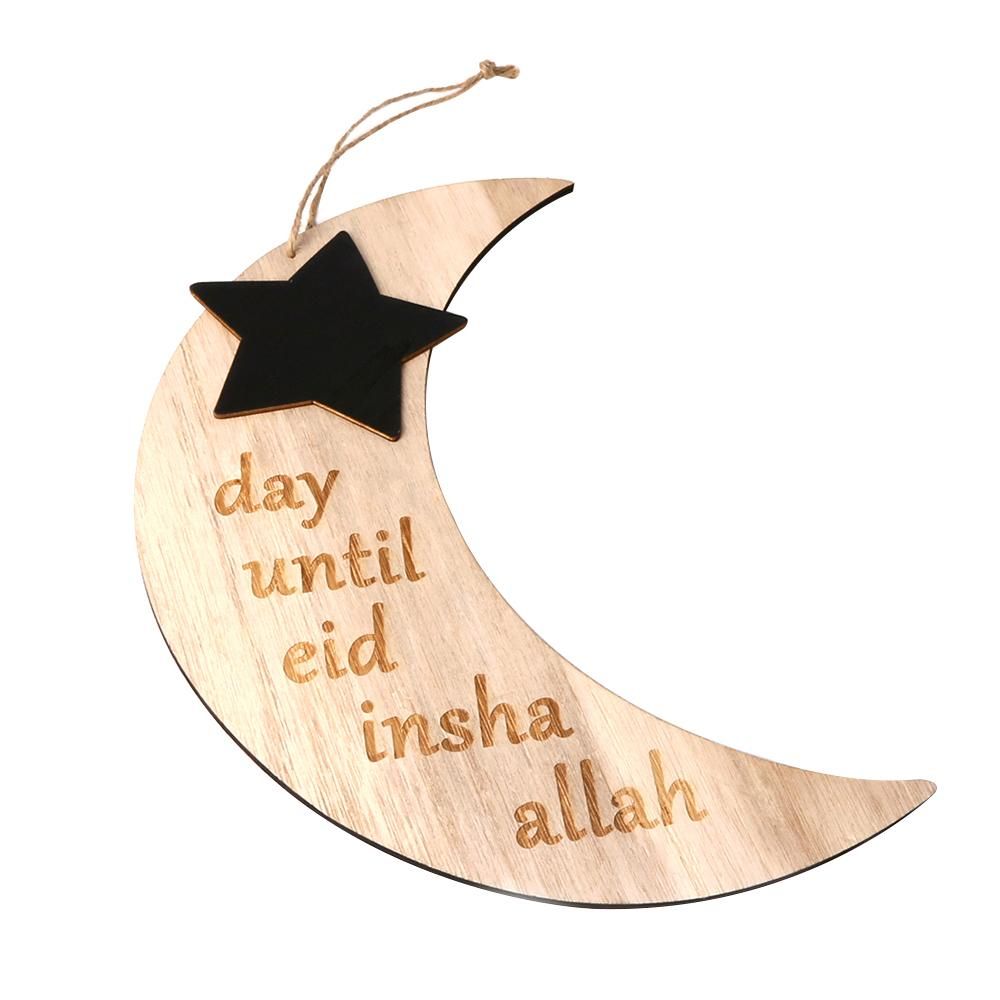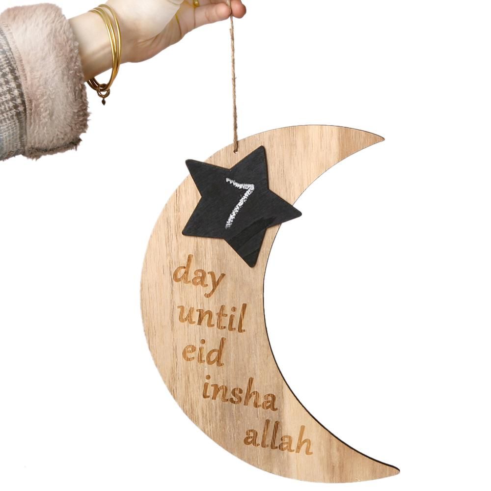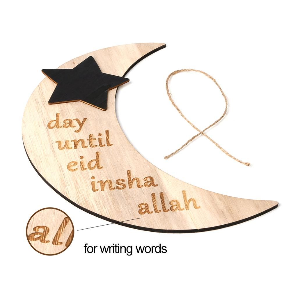 Buy Ramadan Crescent Pattern Decorations DIY Wooden Eid Mubarak Countdown Board Hanging Pendants with Rope Festival Home Decoration in Nigeria