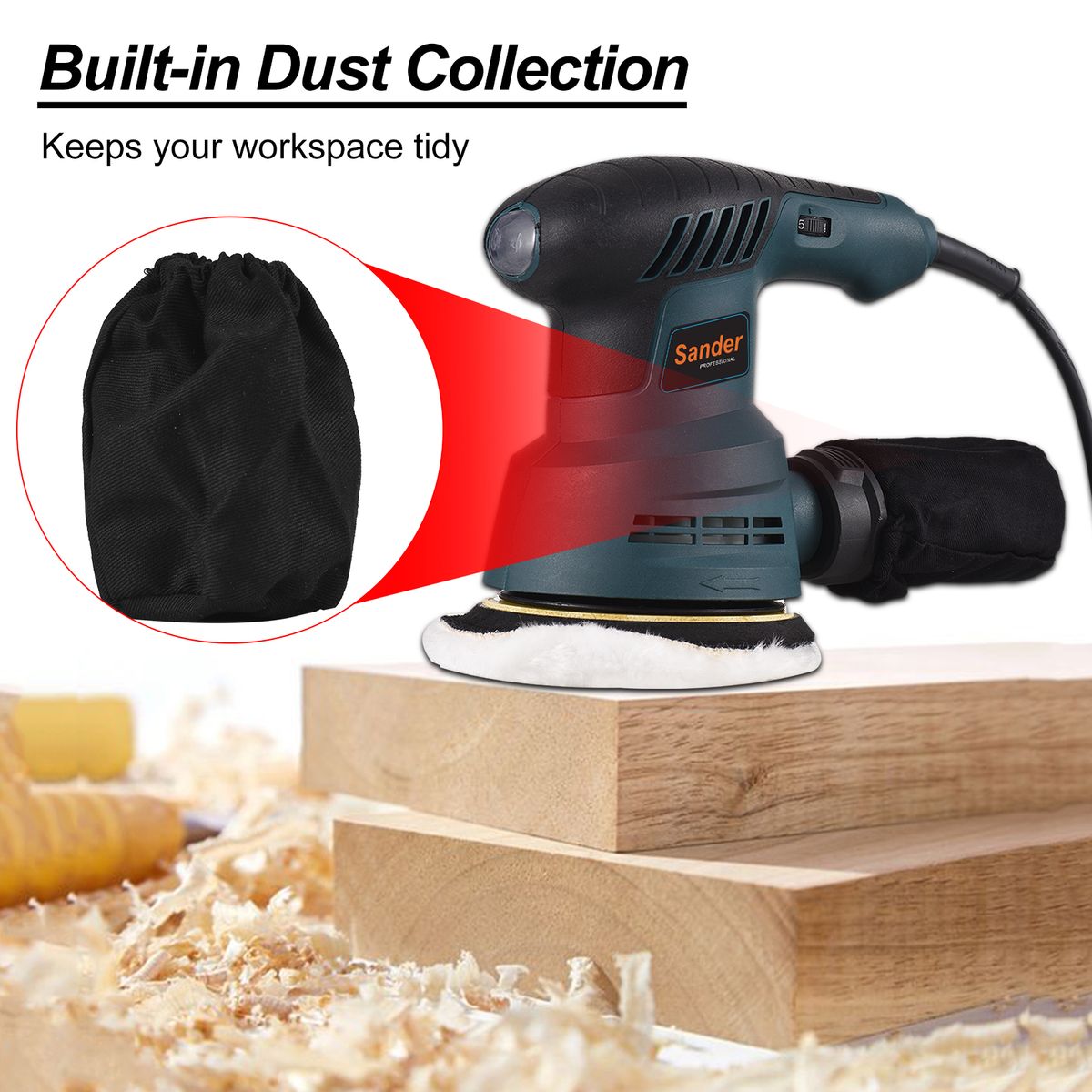 [Efficient Dust Collection System]: The dust collection system of the random-orbit sander is well improved by our professional engineering team for efficient dust collection. The orbital sander is with a clear dust collection box for general use of collecting dust.