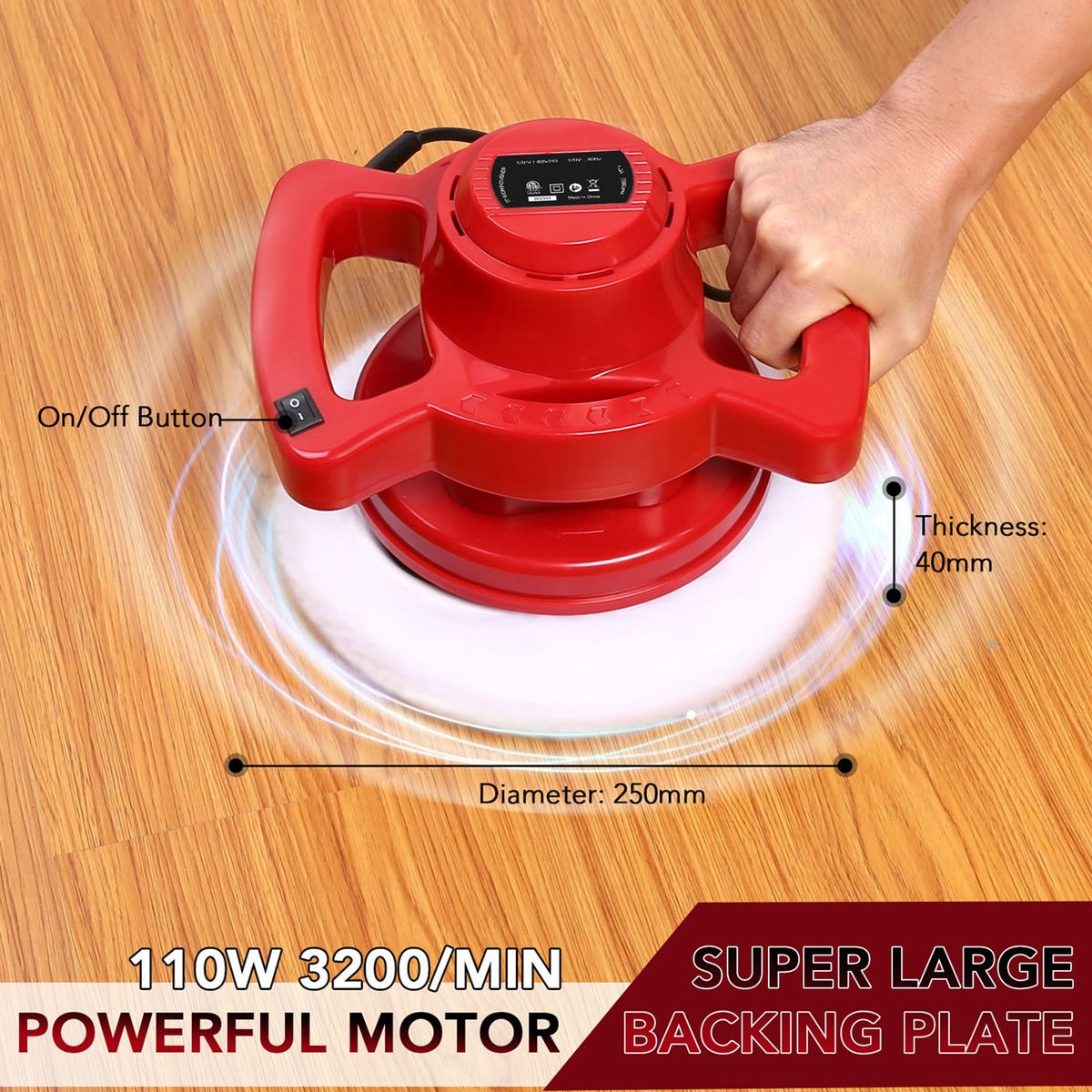 230V/110W power, large contact surface, 3200 OPM to help you complete your work quickly and efficiently.