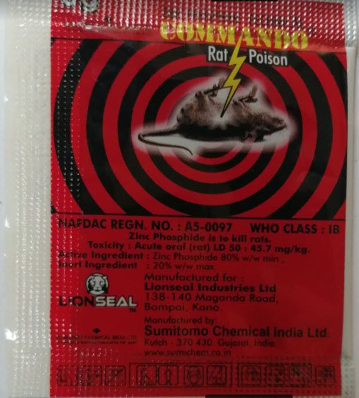 Commando rodenticide is a fast and effective means of getting rid of small and big rats around your home as it kills and dries them instantly. Commando is a very effective rat poison and it contain ZINC Phosphide which kill rats instantly.