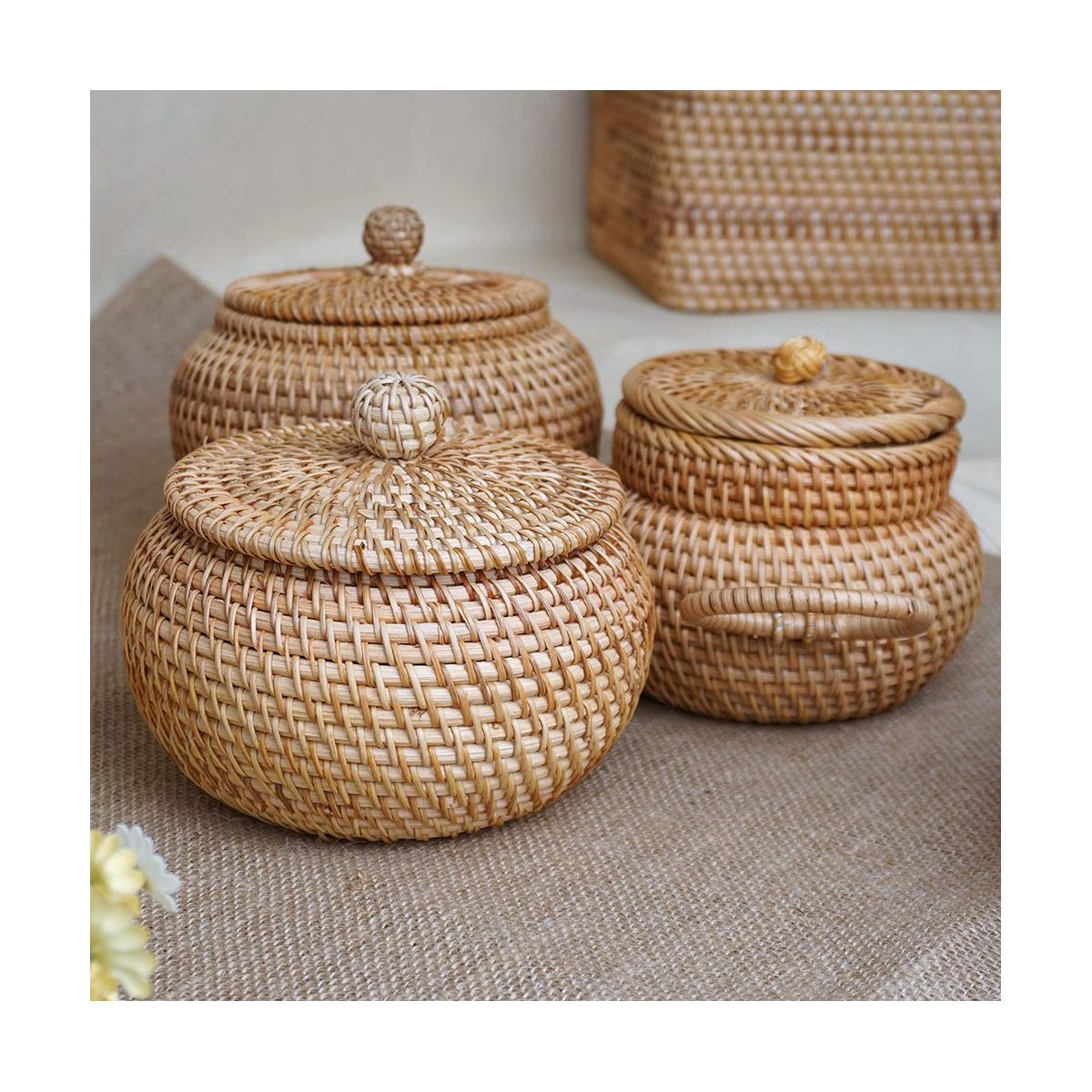 Decorative Rattan Basket with Lid: Handmade, the small rattan basket has a smooth surface. The rattan basket is lightweight so you can carry it from one p to another.