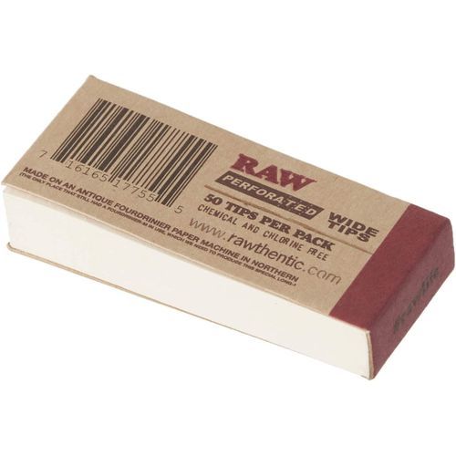 Raw Rolling Papers Perforated Wide Cotton Filter Tips 10 Pack = 500 Tips
