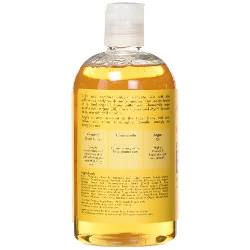 SheaMoisture Raw Shea Chamomile & Argan Oil Baby Head-To-Toe Wash & Shampoo cleanses with a natural ingredient blend that includes Aloe and botanical plant and fruit extracts. Moisturizing comes from a blend of certified organic Shea Butter, Argan Oil and Coconut Oil. The addition of Chamomile makes this a formula that calms and comforts baby & rsquo;s delicate skin. Gentle enough for everyday use for babies and the entire family.