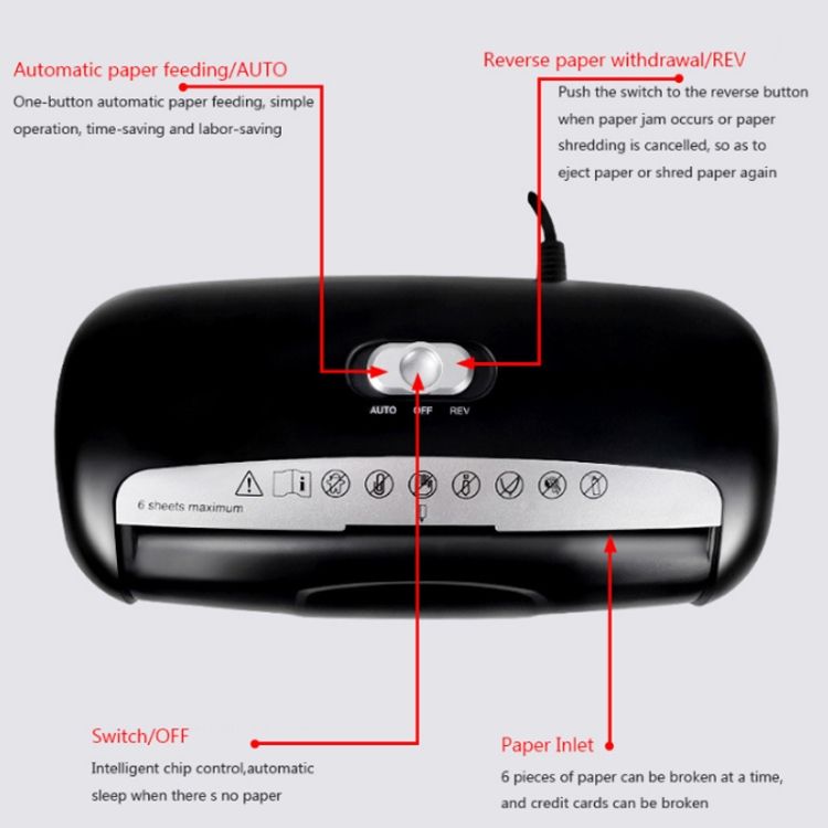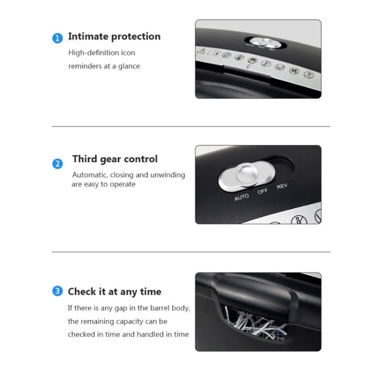 3. Shredding capacity: 5 sheets of 80g (A4)/time