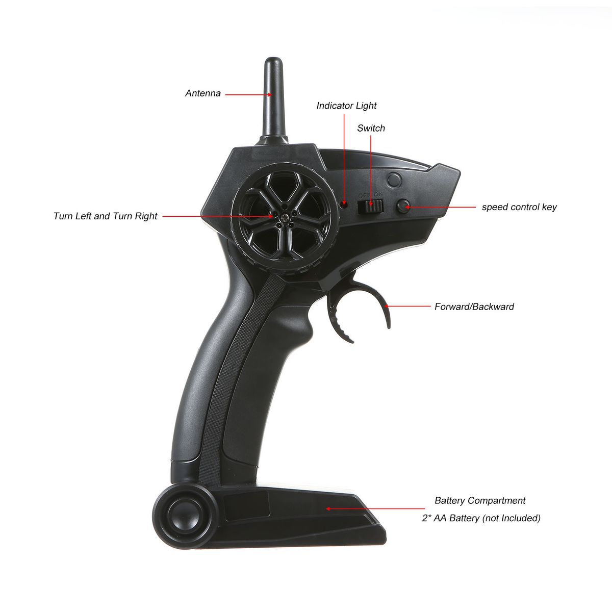 Remote Controller Battery: 2* AA Battery (not Included)