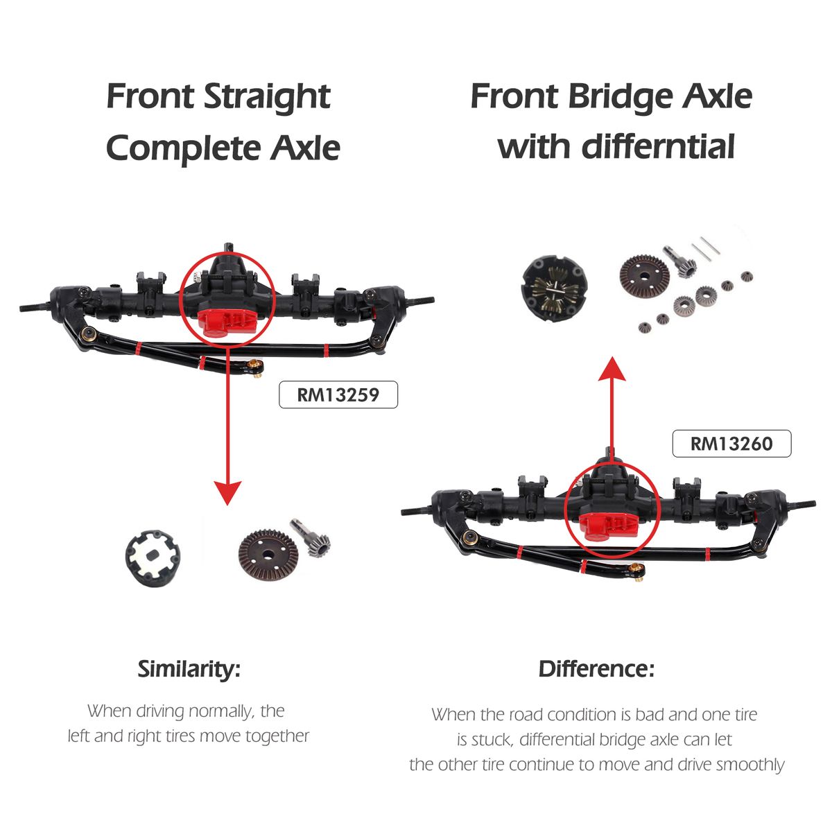 The built-in high pinion gear can increase the ground clearance and improve the angle of the drive shaft.