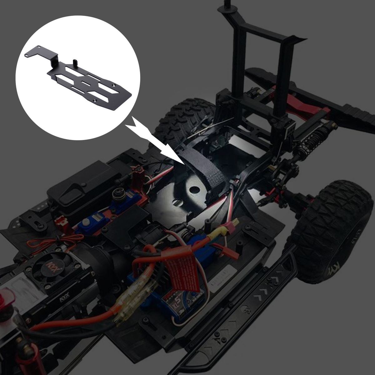 This battery plate is specially designed for Traxxas TRX-4 TRX-6. It provides effective fixation and protection for your retrofitting battery.