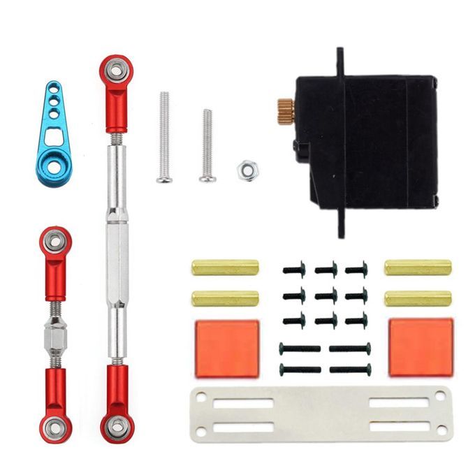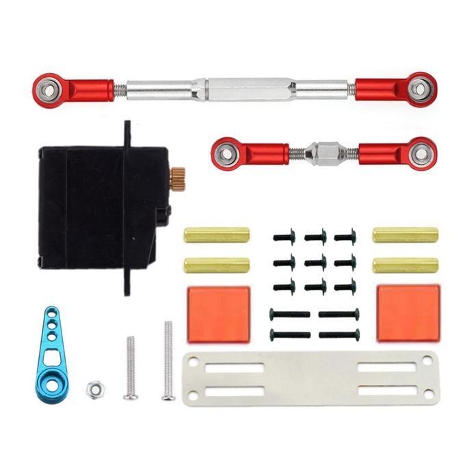 A set of tools, including a metal gear steering gear, 2 steering rods, a steering gear arm and several steering gear .