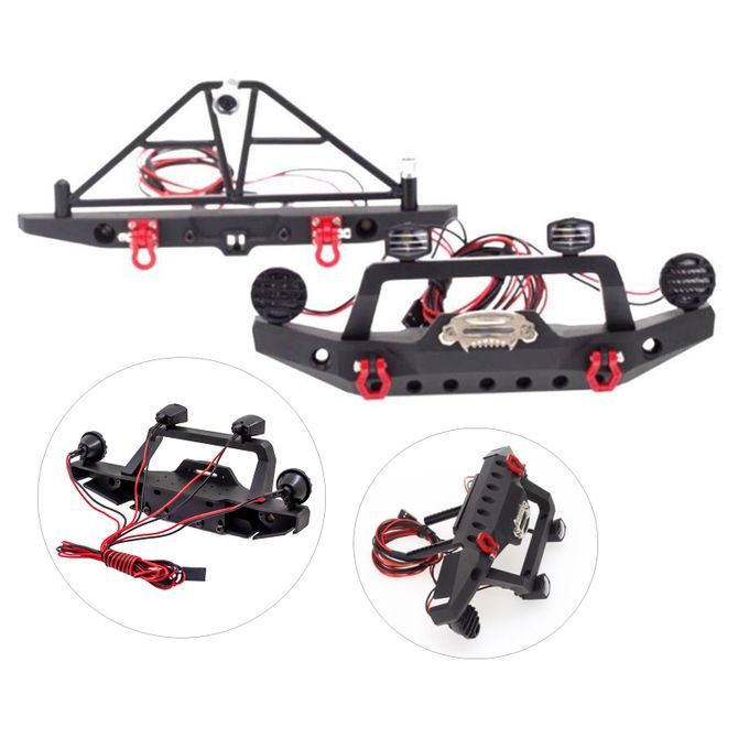 RC Crawler Car Bumper;Metal Rear Bumpers RC Rock Crawler Accessories;1/10 Scale Model Car Spare Parts Replacements;1:10 Model Car Crawler Truck Bull Bumpers Kit;Alloy Rear Bumper 1/10 RC Crawler Accessory Set;RC Front Rear Bumper LED Light Spare Tire Racks