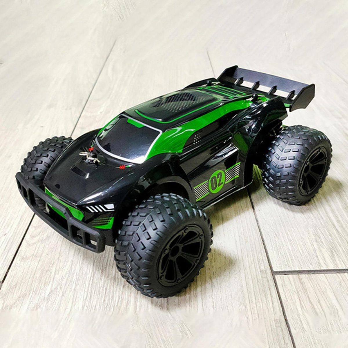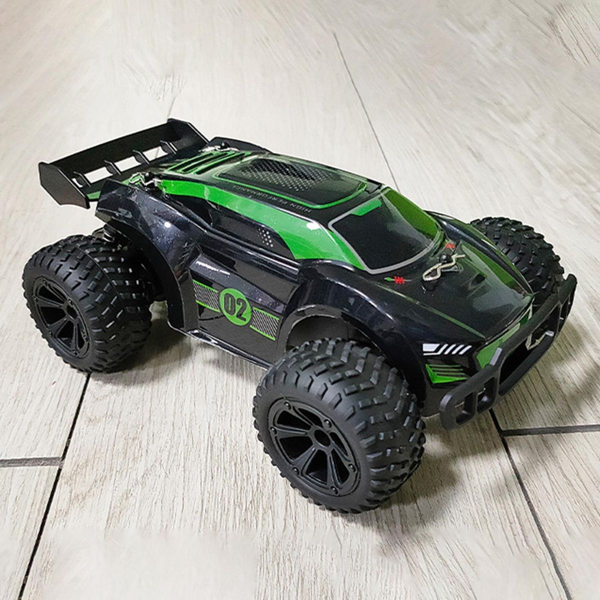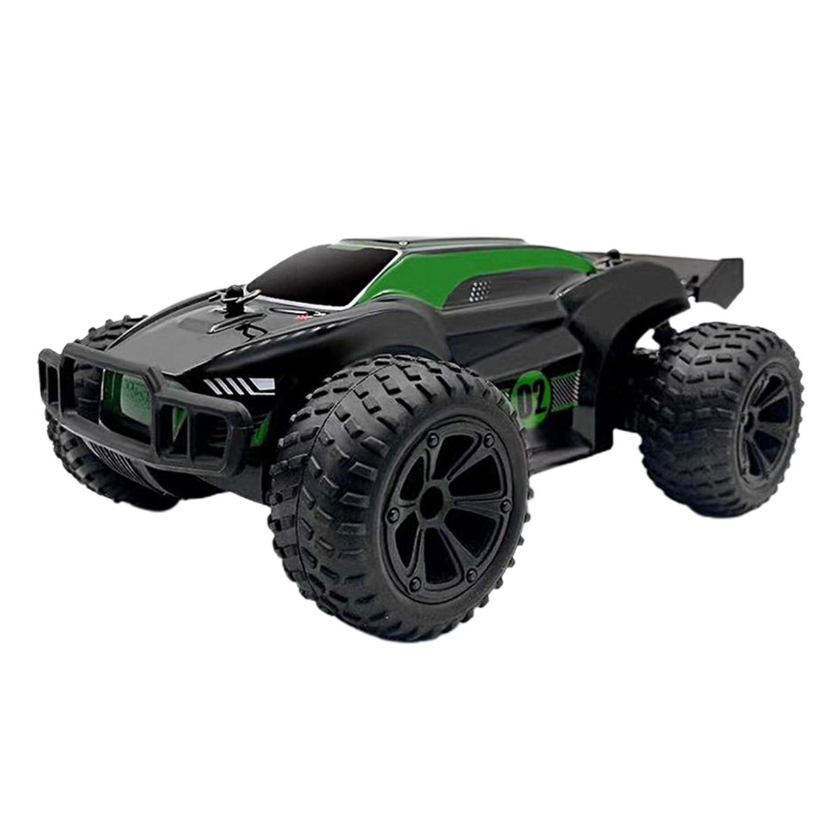 off-road racing car, large tires with bump pattern, cool lighting, anti-skid shock absorption. Good climbing performance and crash worthiness enable it to climb complex road conditions, and the remote control operation is more realistic.