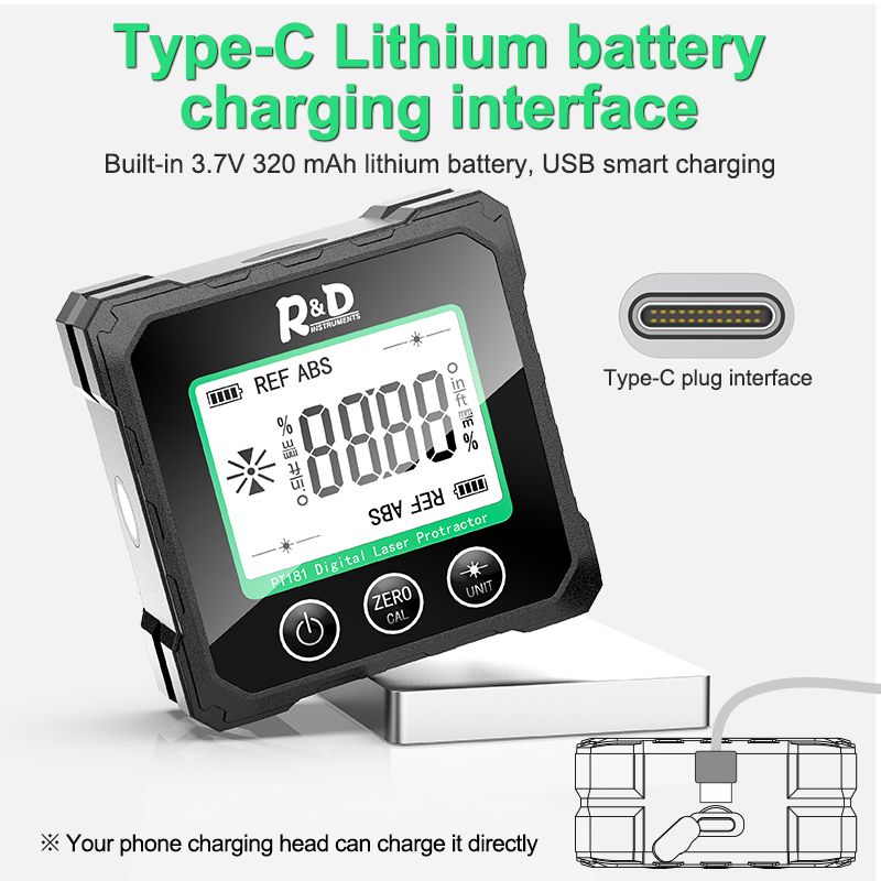 R&D PT180 PT181 Laser Digital Protractor Angle Measure Inclinometer 3 in 1 Laser Level Box Type-C Charging Angle meter for home