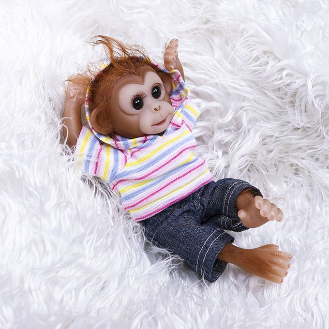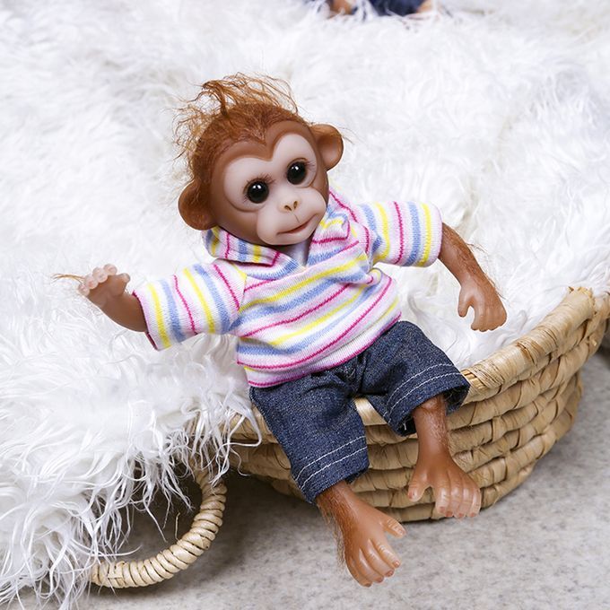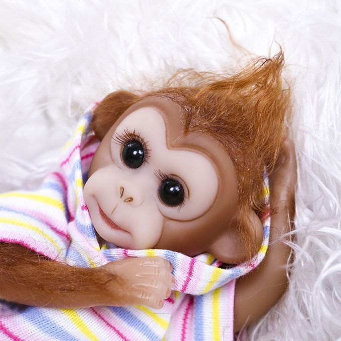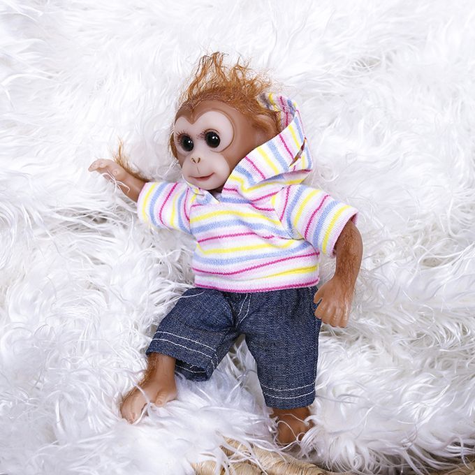 This baby monkey doll looks real, just like a monkey. Made of silicone vinyl and PP cotton, in real baby clothes, 8 inches mini size from head to toe, just like a real baby monkey. Perfect baby accompany toys, Christmas & birthday gifts, collecting dolls.