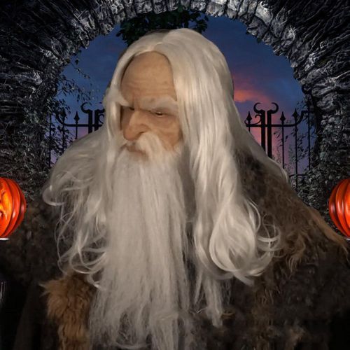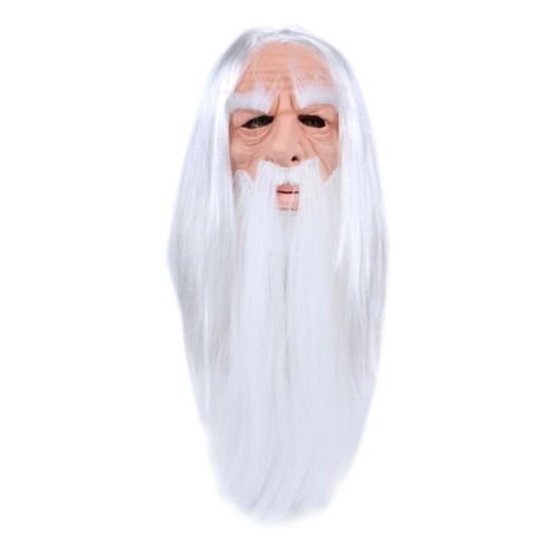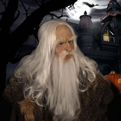 1X Realistic Halloween Headgear Old Man Scary Mask Latex Long Hair Wizard Mask Halloween Costume Cosplay Party Performance Props
