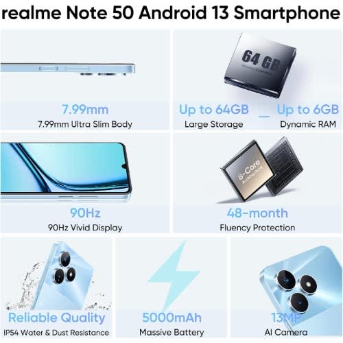 Buy Realme Note 50 - 6.74" - 64GB ROM + 3GB RAM - 4G LTE - Dual SIM - Fingerprint - 5000mAh - Blue in Nigeria