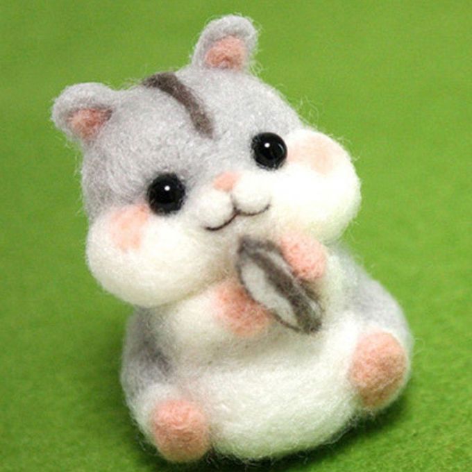 Reative Ute Dog Pet Toy Doll Wool Felt Poked Kitting Non-Finished Han Arft Wool Felting Material Pa Kage- Olorful-Hamster