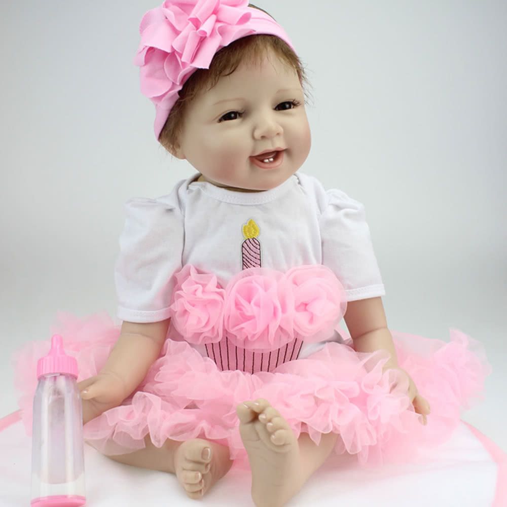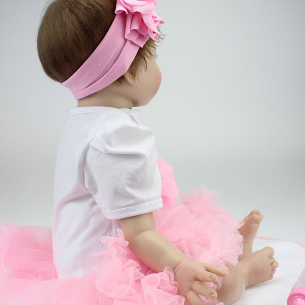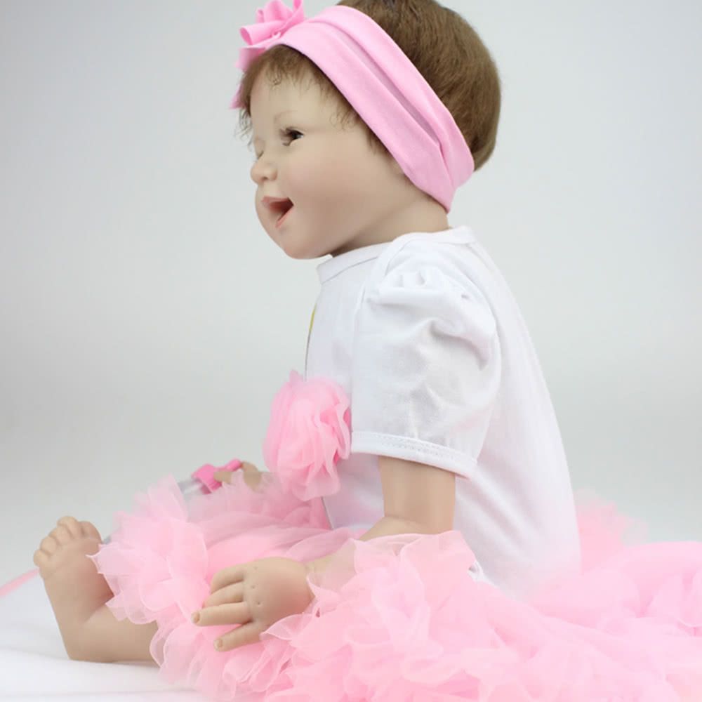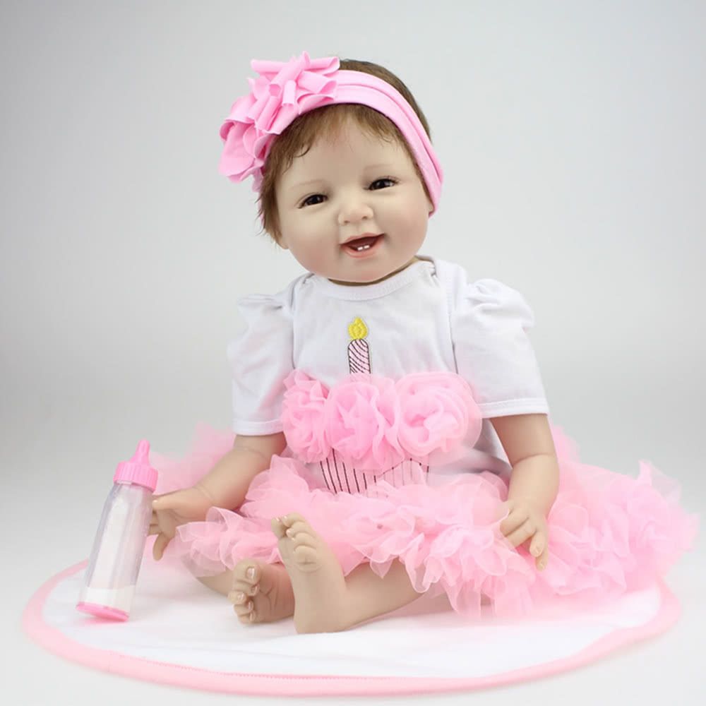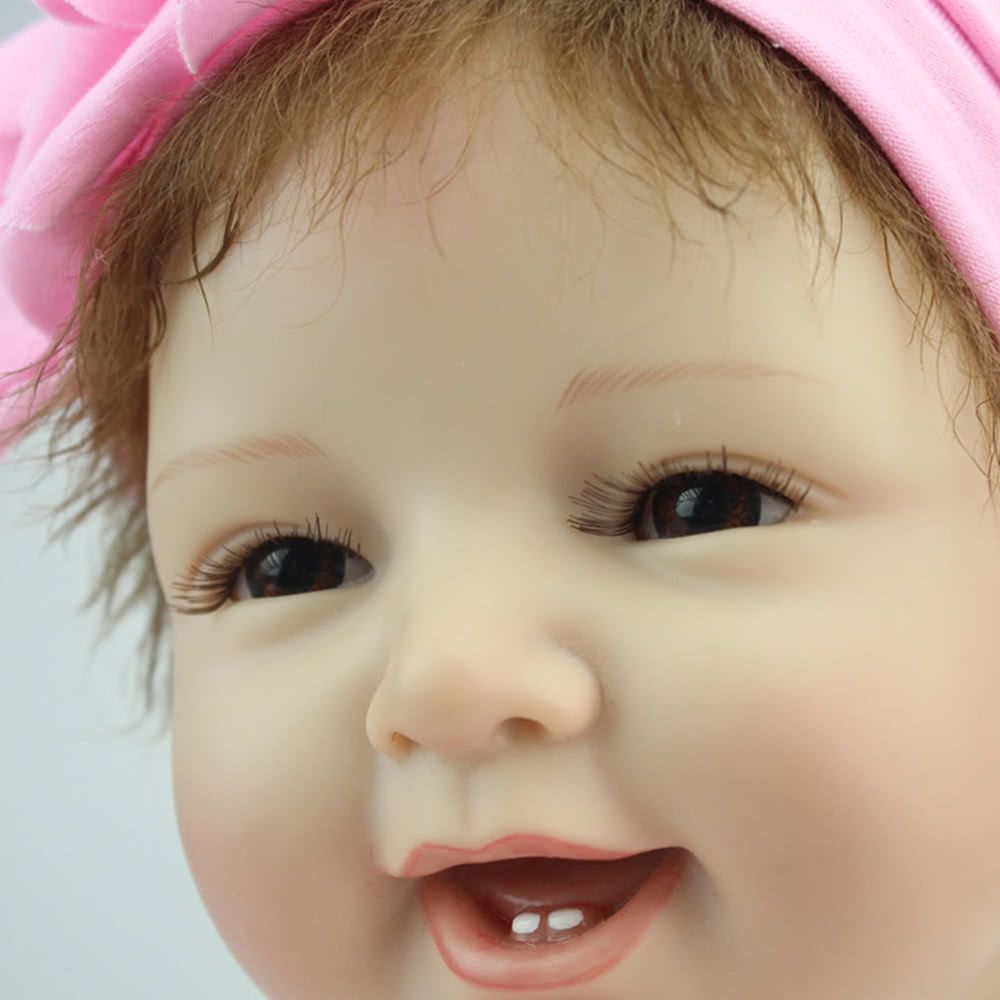 This reality silicon baby doll in nice clothes with long brown hair and blue acrylic eyes, 23 inches from head to toe, with gentletouch vinyl head and limbs and weighted body for a real baby feel. Perfect for baby accompany toys, Christmas amp; birthday gifts,collecting dolls.