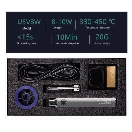 This is a supermini USB soldering iron. It is power via the USB interface, so you can power it by power bank, portable power source, USB adapter, and so on.