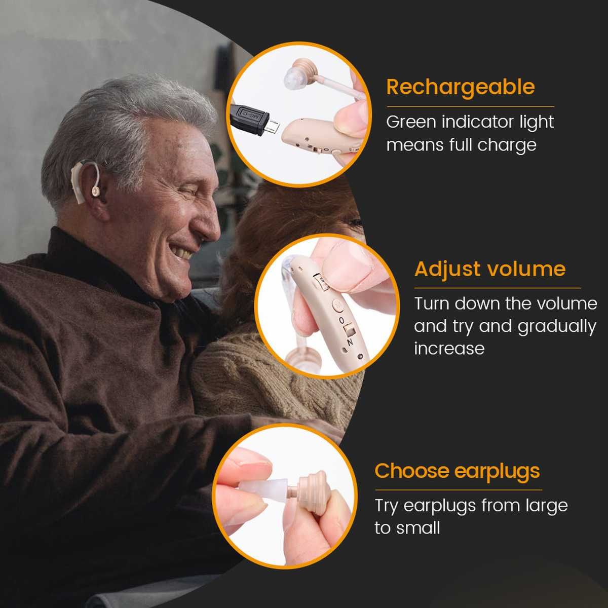 This new Bluetooth hearing aid amplifiers G-25BT equip with the latest wireless Bluetooth technology to easily fit for all adults, seniors and elderly hearing loss. With the Bluetooth technology, the hearing aid can pair to the iOS and Android phones, televisions, tablets and other favorite audio devices by the Bluetooth paired for phone calling, music and TV watching.