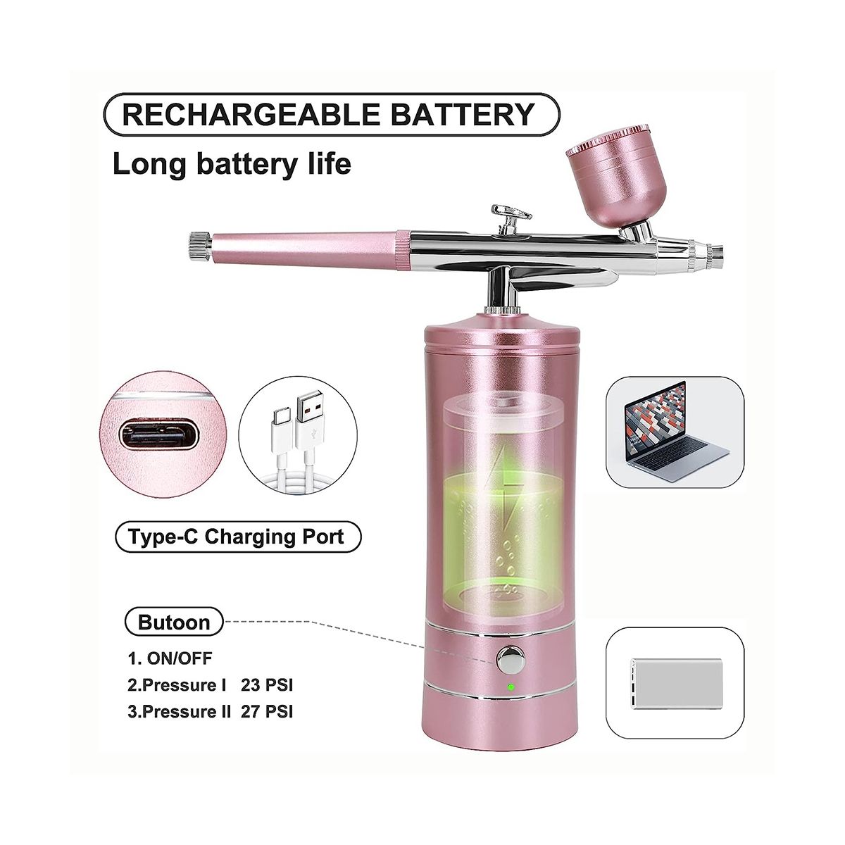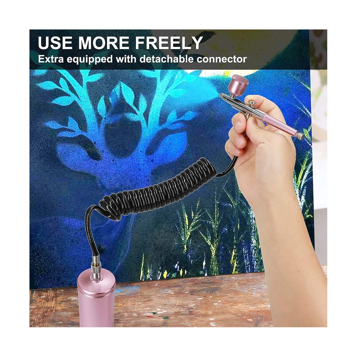 [Multifunctional & Use Widely]- Our portable airbrush kit adopts 0.4mm nozzle and adjustable airflow regulator, you can screw the regulator to control the spray amount, reduce the blockage problem, can be used for tattoos, art painting, cake decoration, make-up, beauty hydration, nail art, handicrafts, models, body paint etc. Meet your various needs in many ways.