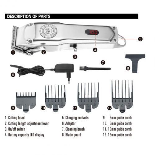 - Accessories: 4 guide combs, cleaning brush and adaptor