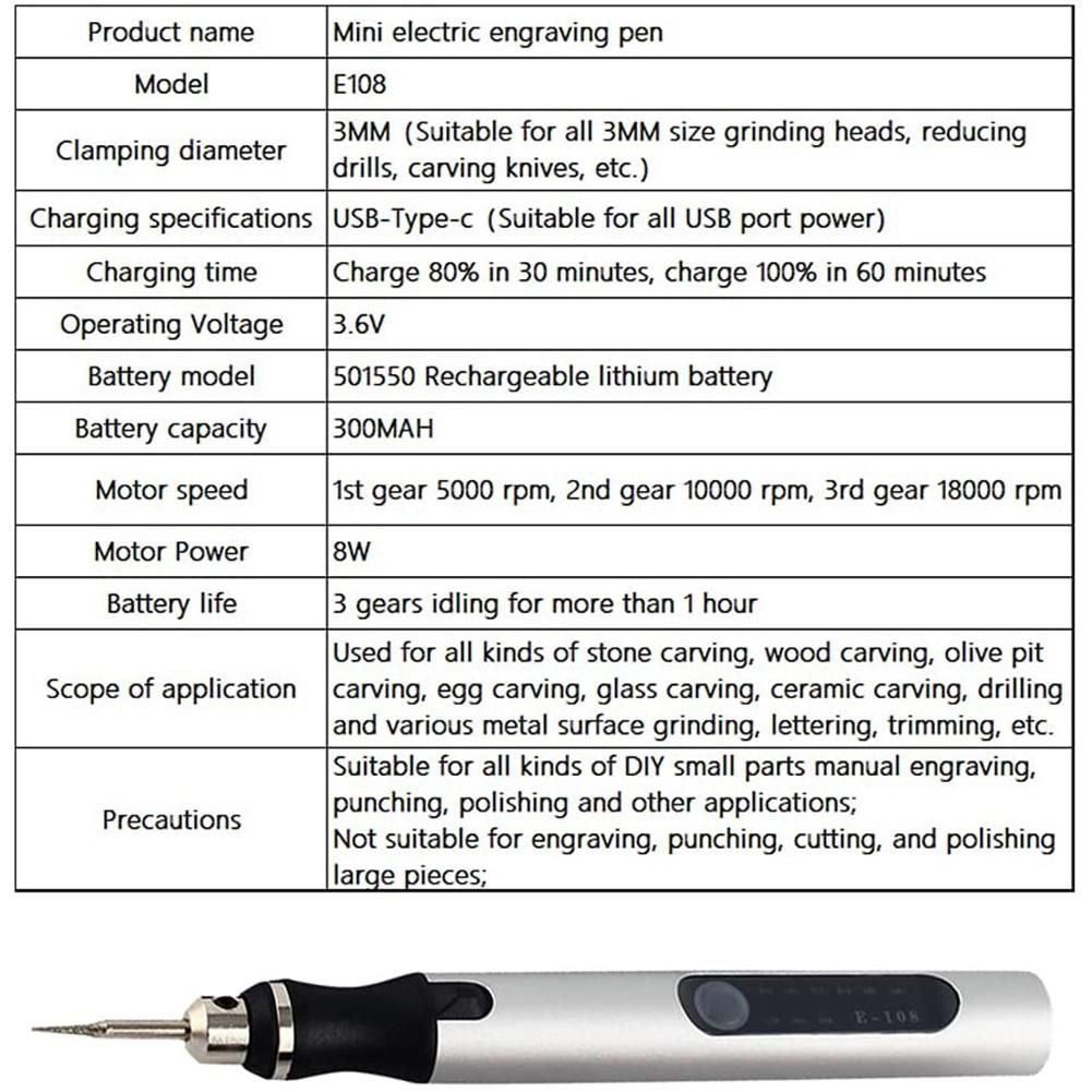 [Comfortable& Easy to Control]Just holds it like holding a pen, lightweight & compact design, letting you perform intricate work smoothly and effortlessly. Easily control the engraving/drawing path. Makes smooth and clear strokes.