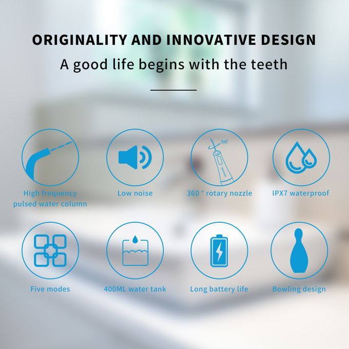 Features:Humanization Design: with dynamic smooth line design, the bowling shaped oral irrigator is compact & neat, 400ml/14oz water tank is detachable for easy cleaning and water refilling.