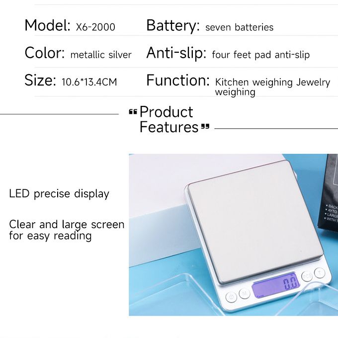 Digital food scale with 6 units conversion function: g, oz, ozt, dwt, ct, gn, with clear LCD screen for all kinds of complex reading environment and clear and soft blue light for your eyes comfort while reading.