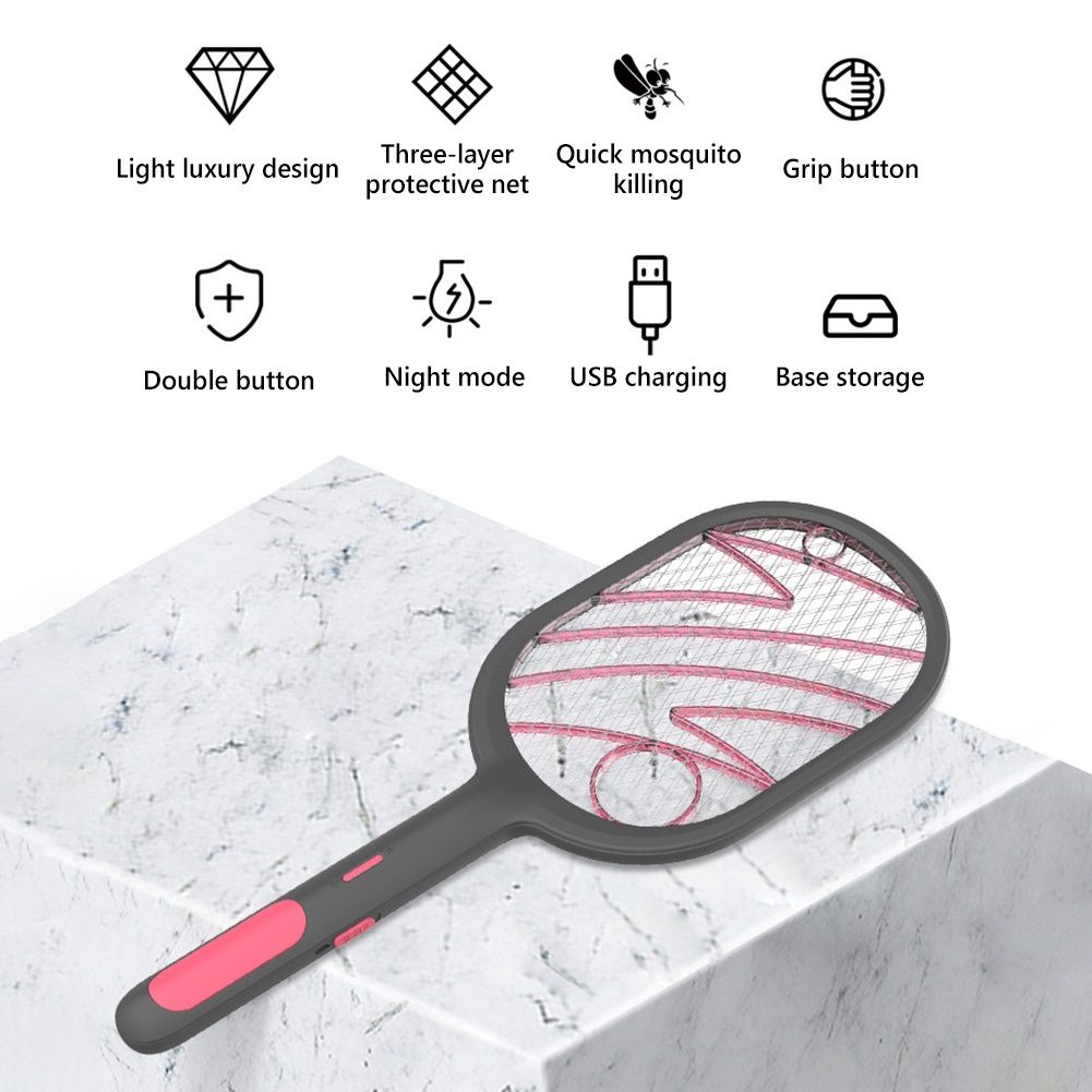 The mosquito killer features dual use, it is a mosquito killing lamp and a mosquito swatter. Supports two modes of manual mosquito killing and intelligent mosquito killing.