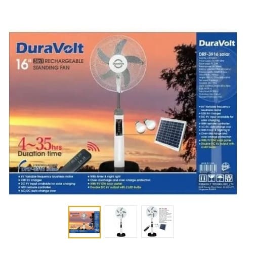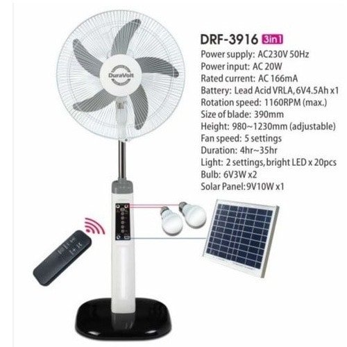 Buy Rechargeable Fan + Solar Panel + 2 Bulbs & Extra Battery - 16" in Nigeria