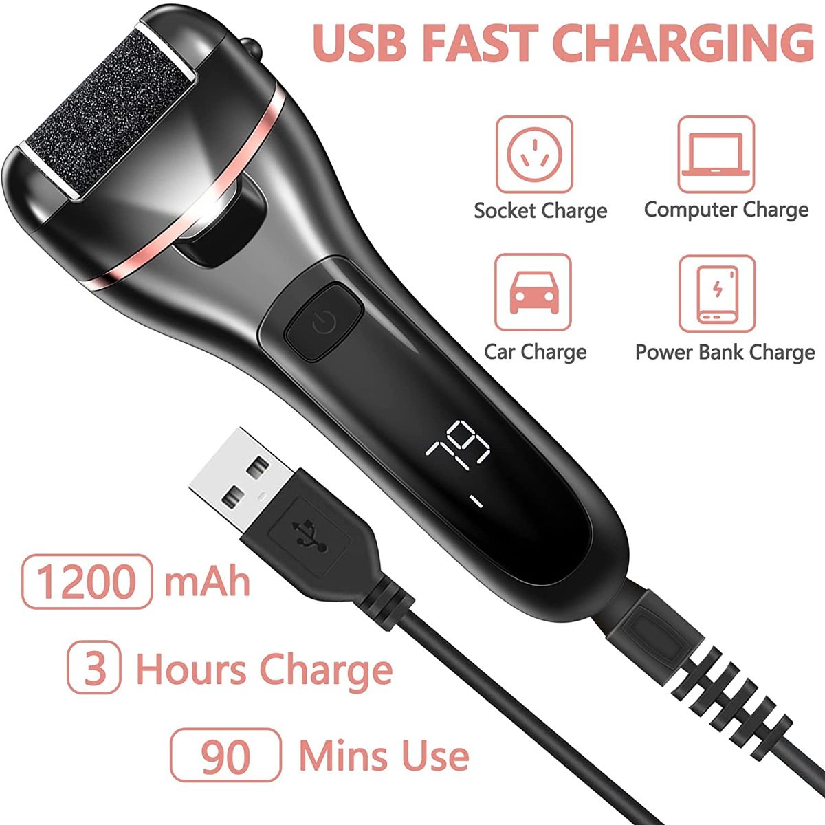 2 Speed Control】 The Electric Foot Rasp with 2 speed settings can be adjusted to your requirements. Speed 1: 1900rpm / Speed 2: 2200rpm【Three Roller Heads】 Come with 3 different style roller heads : 1 thin roller for daily foot care; 1 regular roller to remove dead skin; and 1 coarse roller for annoying calluses. The roller is composed of exfoliating micro-grains to easily and quickly remove all calluses for a very soft foot effect in no time【