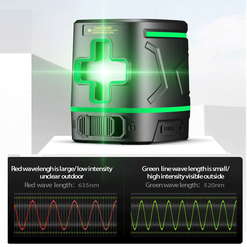 The laser projects visible green lines, which are up to 4X brighter than standard red beams