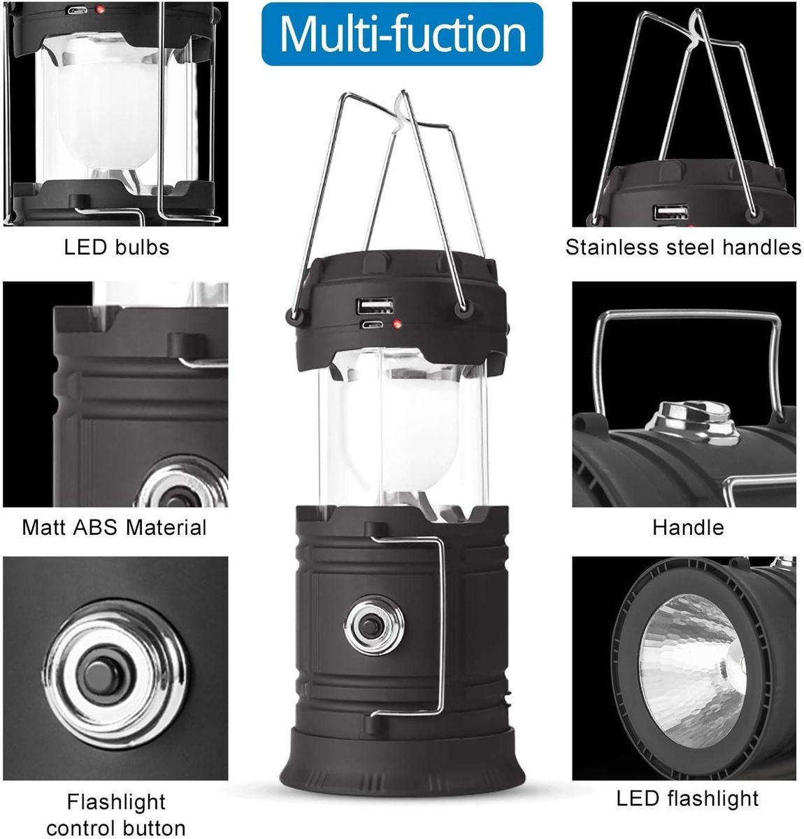 - [Flash Corporal Design]: Use high -quality PC materials, glass top and stainless steel handle, durable shockproof, folding and stretching, hooking and removing, hanging on the camping tent, and using the side switch to use it as a flashlight.