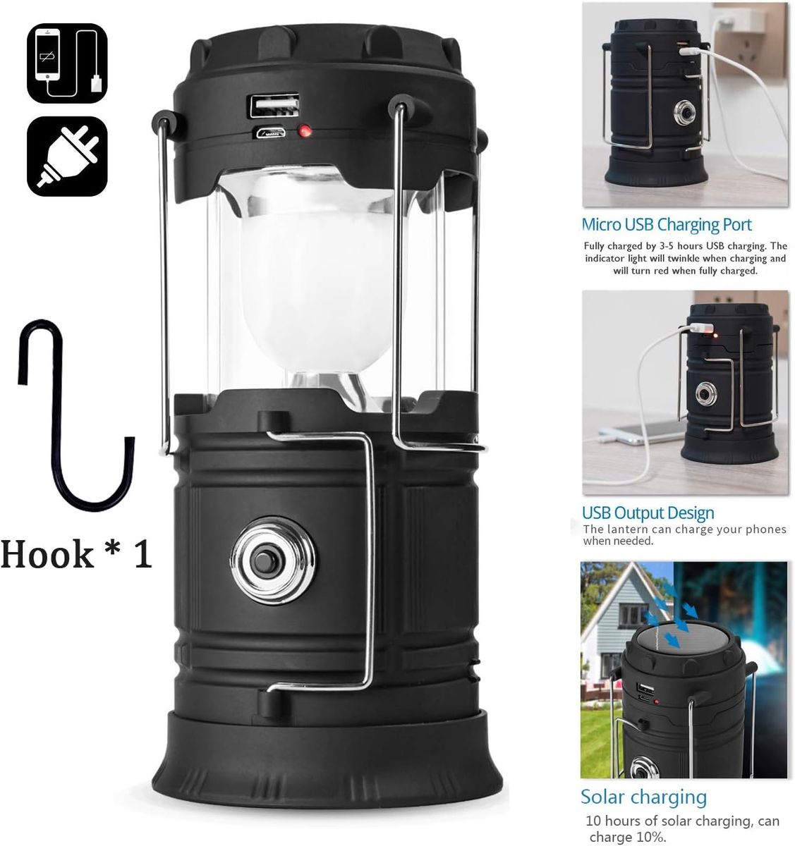 - [Solar/ USB charging lamp]: Two charging modes: charging solar energy and USB, charging when mobile phone and other USB power supply equipment, or charging through the solar panel of the top of the lamp, the charging time is 6 hours. Do not over -charging. It can last 6-18 hours.
