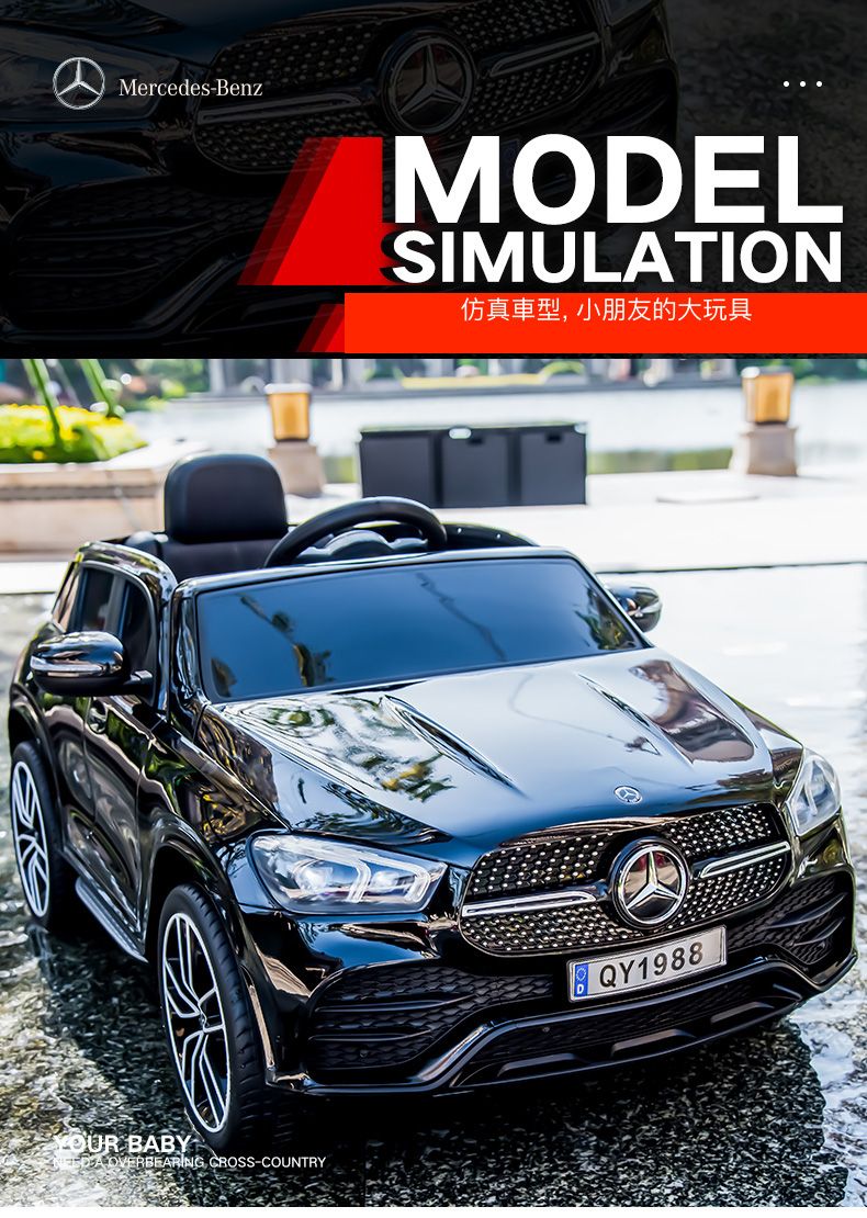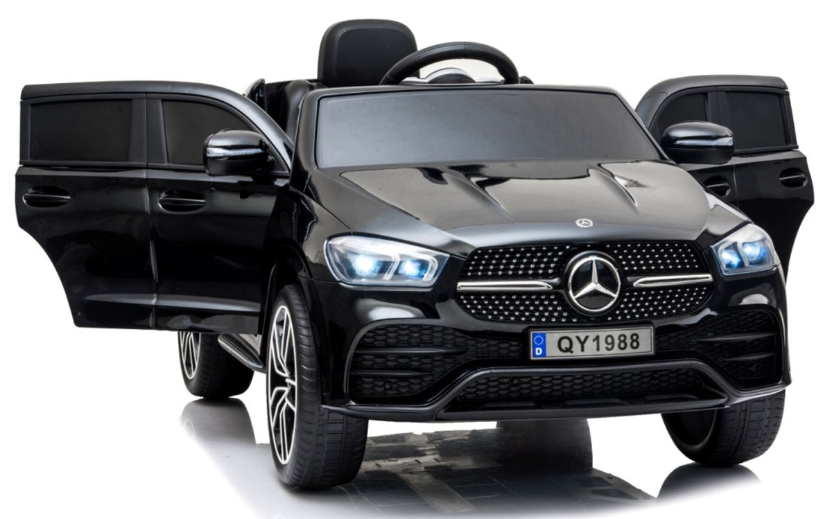 This kids electrical car comes complete with Mercedes official branded logos and the price is much more cheaper. Super stylish Mercedes Benz ride on cars like this GLE 450 are in high demand. It contains great features such as soft EVA tires, all-wheel suspension, padded leather style seat, Bluetooth connectivity, integrated multi-media console, start-up engine sounds, button-activated horn, functioning lights, opening doors, and dashboard battery voltage display.