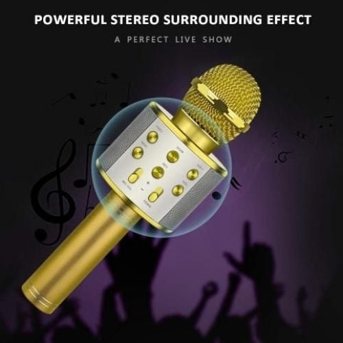 Rechargeable Wireless karaoke microphone, also can be used as a speaker. High-quality speaker and highly sensitive microphone, creating louder and clearer sounds.