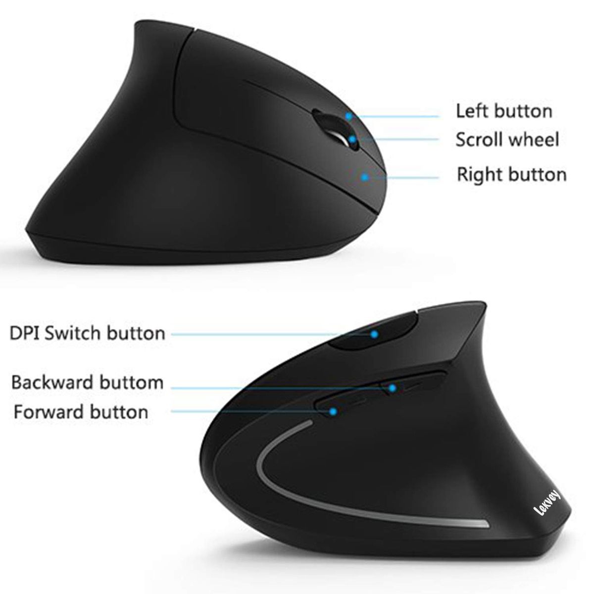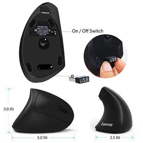 Ergonomic Mouse, Vertical Wireless Mouse - LEKVEY Rechargeable 2.4GHz Optical Vertical Mice : 3 Adjustable DPI 800/1200/1600 Levels 6 Buttons, for Laptop, PC, Computer, Desktop, Notebook etc