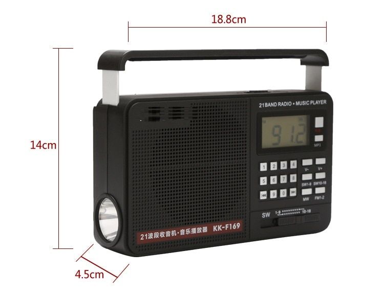 1X Rechargeable Portable 21 Bands Radio Receiver Fm/AM/SW1-18 Radio Tabletop Radio Music Player Support USB Disk SD Card MP3 Files