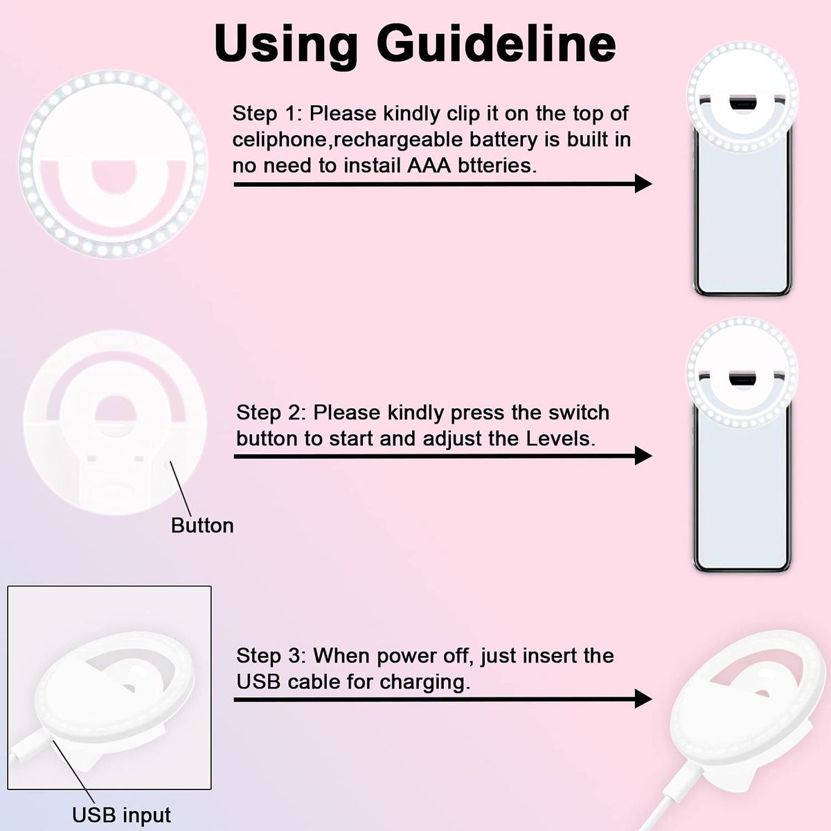 - 【Universal Compatibility】This light is easy to clip on most phones.Compatible with all smartphones,tablets,laptops,etc.Works on taking selfie,live show,art photography, objects supplemental light,selfie fill in light or inadequate light condition.you can also use it as torch,emergency light, making up light and even more!