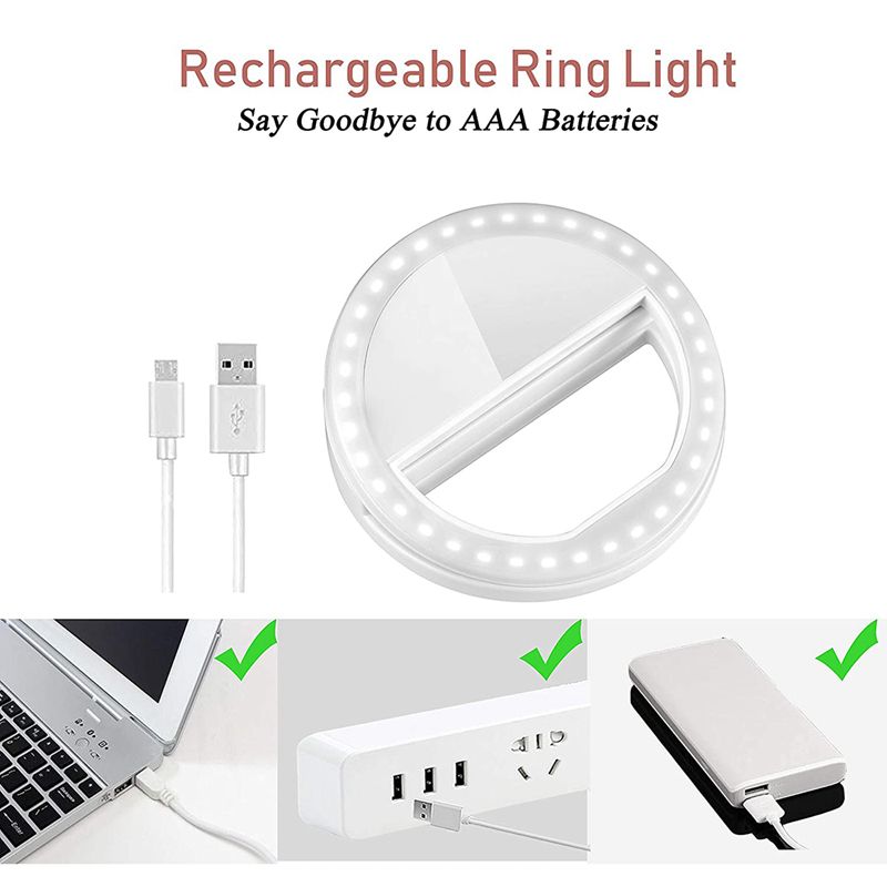 5.The light ring is rechargeable with a USB cable connected to a laptop or PC.