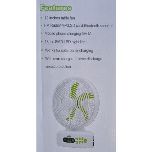 Buy Rechargeable Table Fan With Bluetooth And Radio - 12'' in Nigeria