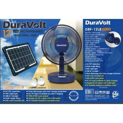 Buy Rechargeable Table/ Wall Fan With Solar Panel And Bulb - 12" in Nigeria