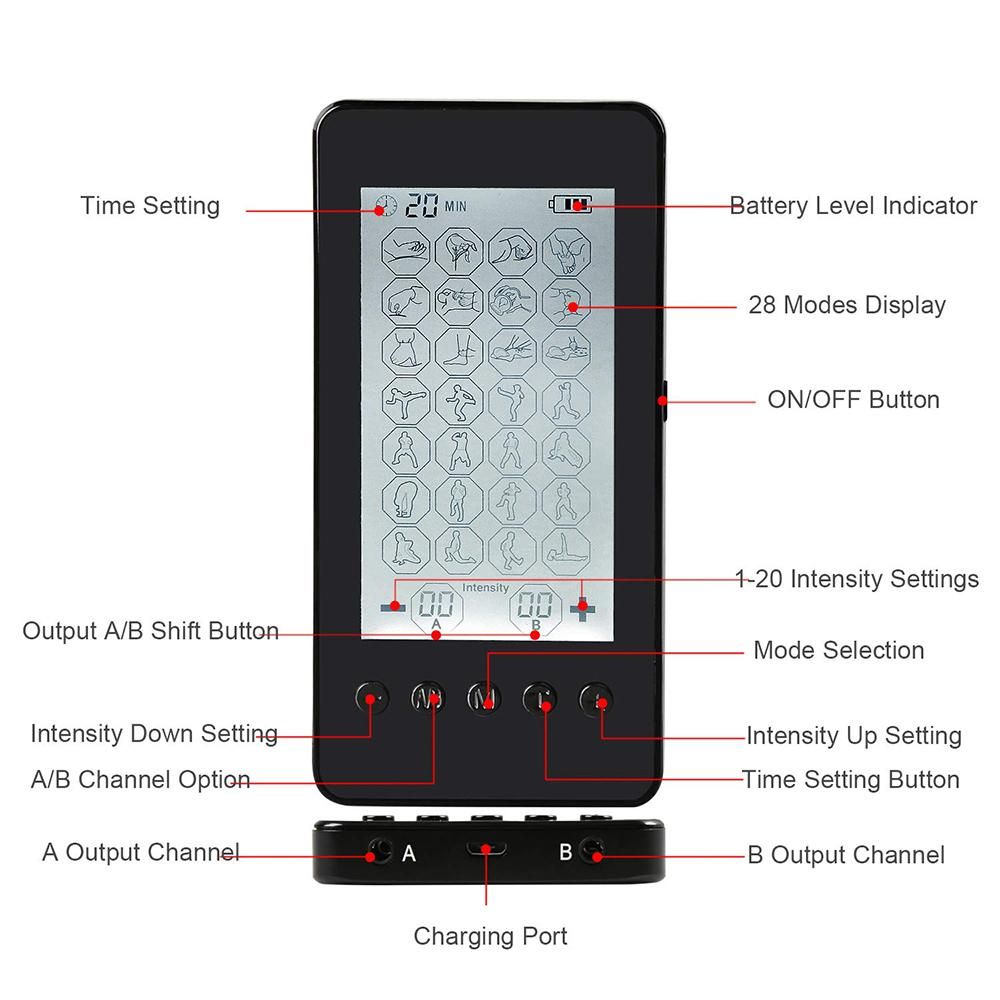 Buy Rechargeable TENS Unit Dual-Channel EMS Muscle Stimulator 28-Mode Pulse Massager with 20 Strength Levels/Touch Screen Black in Nigeria