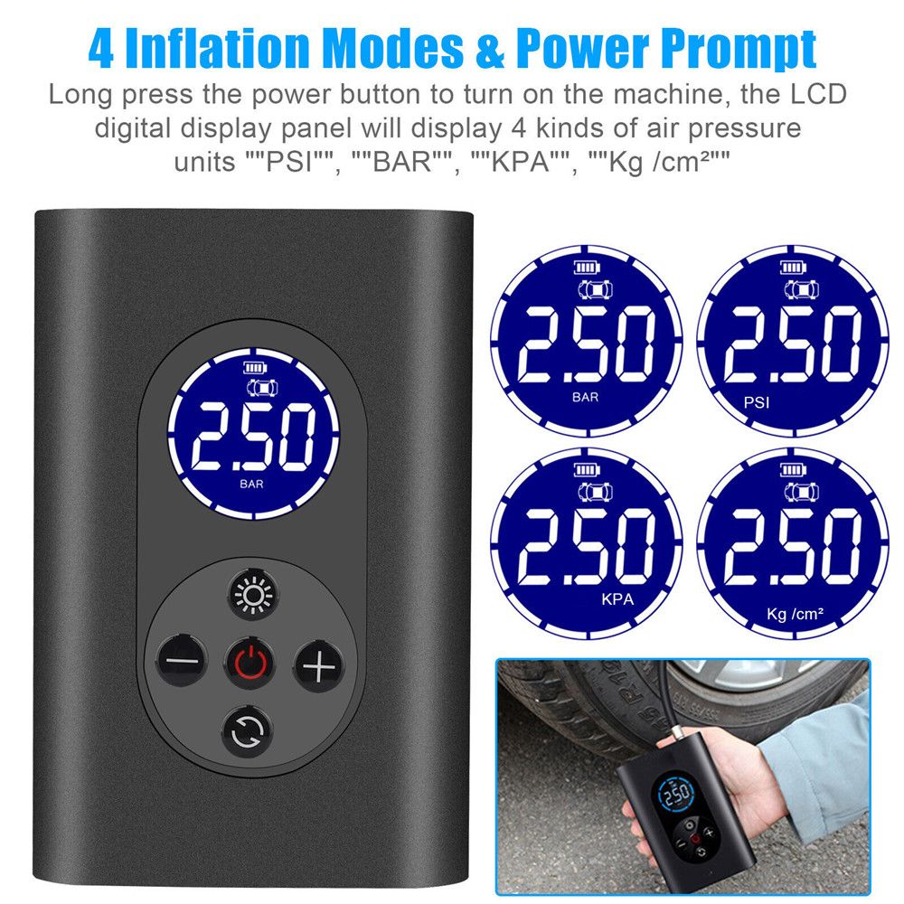 Large pressure gauge LCD -Construction -precise chip, just connect the air pump to any tire, tire inflation, tire inflation will automatically detect the current pressure state. Large LCD screens have 4 optional units, such as PSI, BAR, KPA, KG/CM^2, which are easy to read even in a dark environment.